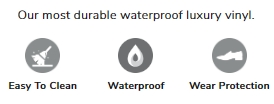 100% waterproof floors provide peace of mind for floors in any room with water, dampness, humidity, and more.